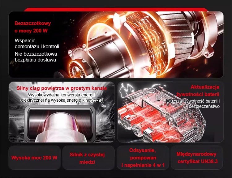 [Darmowy silnik o dużej mocy] Bardzo duży bezprzewodowy odkurzacz samochodowy