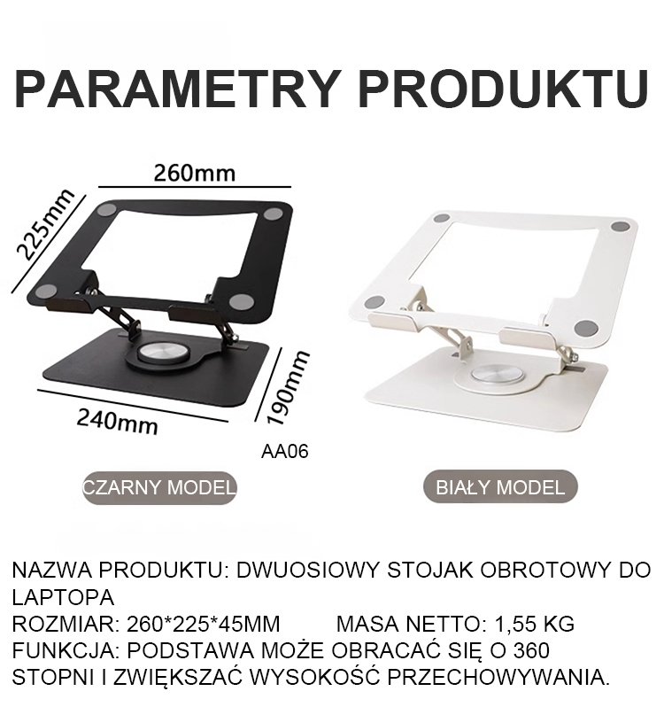 Obrotowy o 360 stopni stalowy uchwyt na komputer